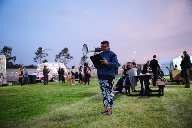 The words of Western Sydney Writers, myself included, over a megaphone as part of Hasta Bella Vista by Tina Havelock-Stevens